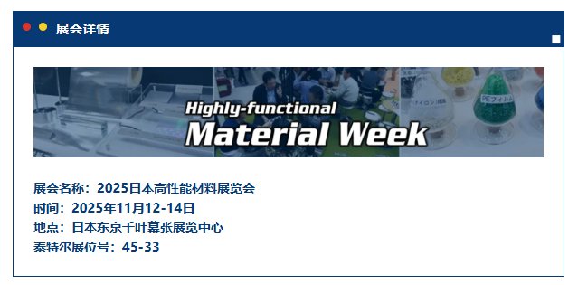 展會預告 | 泰特爾邀您參加日本高性能材料展覽會