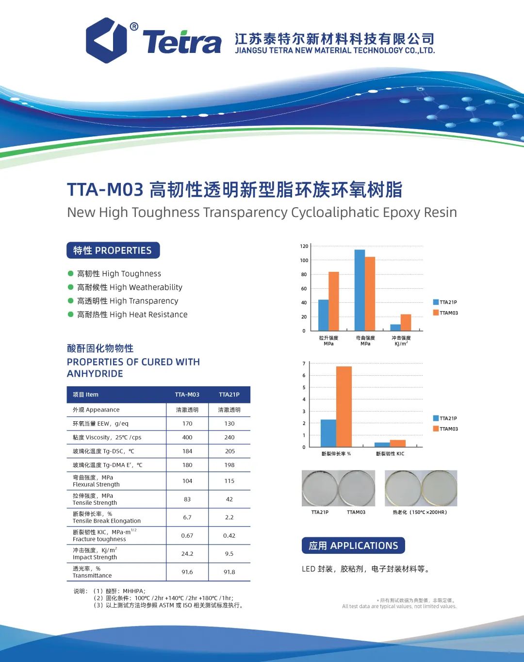 Jiangsu Tetra New Material Technology Co., LTD (Tetra) is a Chinese multinational chemical corporation active in the fields of specialty, fine and custom chemicals. Tetra has strong R&D, Manufacturing, Sales, and Customer Services teams, which makes it an expert of cycloaliphatic epoxy resin. Tetra aims to become a better solution provider in new materials.