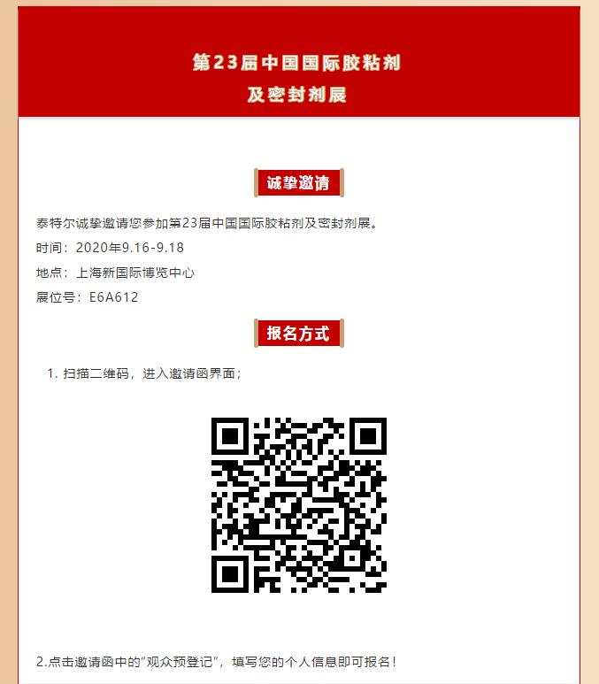 9.16-9.18泰特爾特邀您參加第23屆中國國際膠粘劑及密封劑展