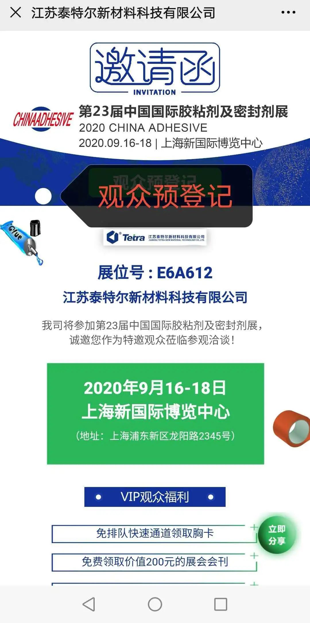 泰特爾在第23屆中國國際膠粘劑及密封劑展等您來!
