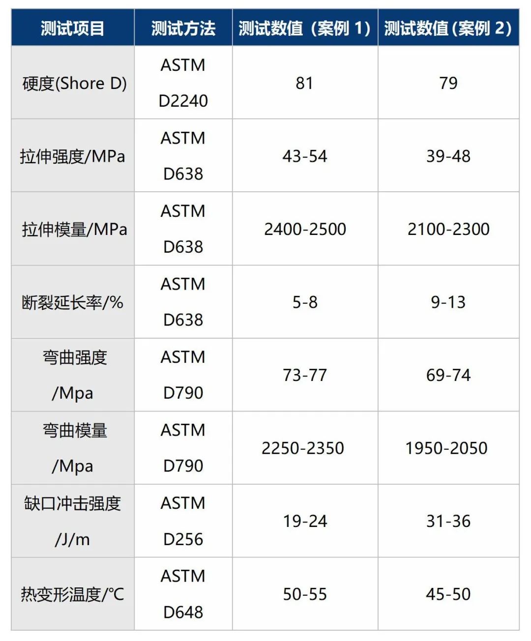 如下對(duì)比案例,案例1中主要脂環(huán)族環(huán)氧樹脂為TTA21,案例2中主要脂環(huán)族環(huán)氧樹脂為TTA26,從以下數(shù)據(jù)可知,由TTA26組成的光敏樹脂液,固化后材料的韌性明顯提高。